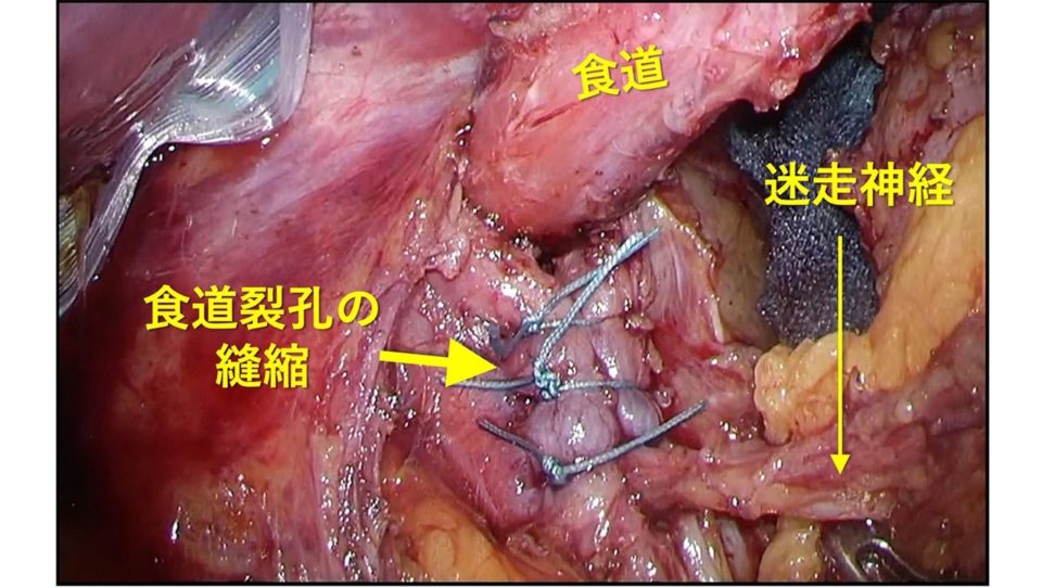 食道裂孔を適切なサイズに縫い縮めます(食道裂孔縫縮)