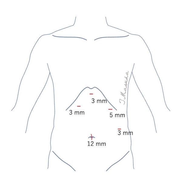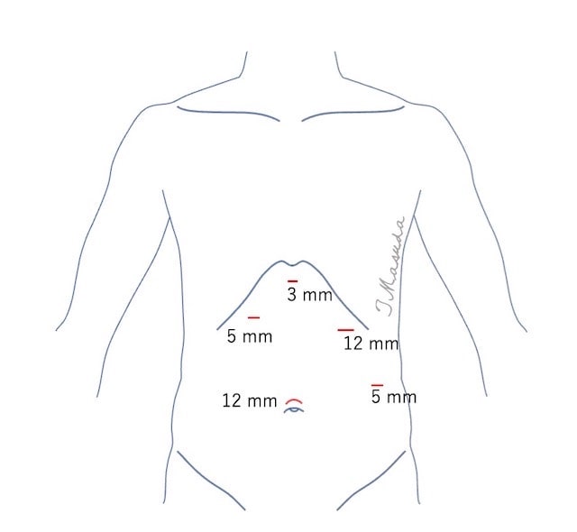 5か所の小さな傷で手術を行います